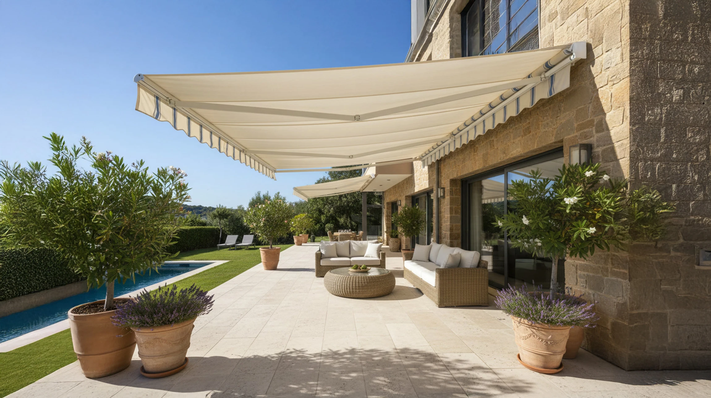 Nous déterminons votre choix optimal en fonction de plusieurs paramètres importants : l'orientation de votre terrasse, ses dimensions, votre exposition aux vents et le style architectural souhaité. Les stores monoblocs vous offrent une excellente stabilité sur les grandes terrasses, alors que les stores coffres protègent efficacement la toile en position repliée. Dans notre région méditerranéenne, nous privilégions des toiles de qualité supérieure avec traitement anti-UV et imperméabilisant, résistantes au climat ensoleillé et parfois venteux.